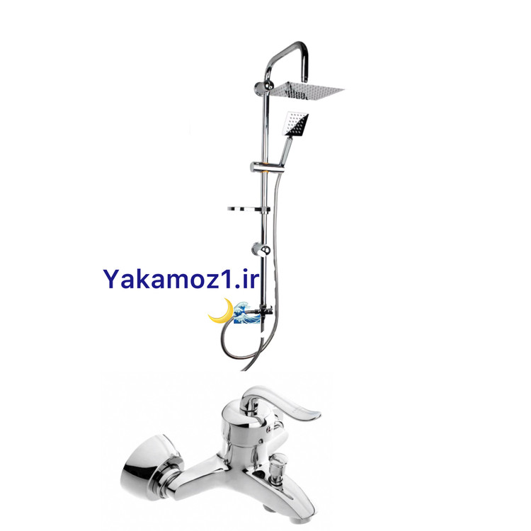 ست شیر حمام قاجاری بامبو کروم با علم دوش دوکاره استیل مربعی و ارسال رایگان