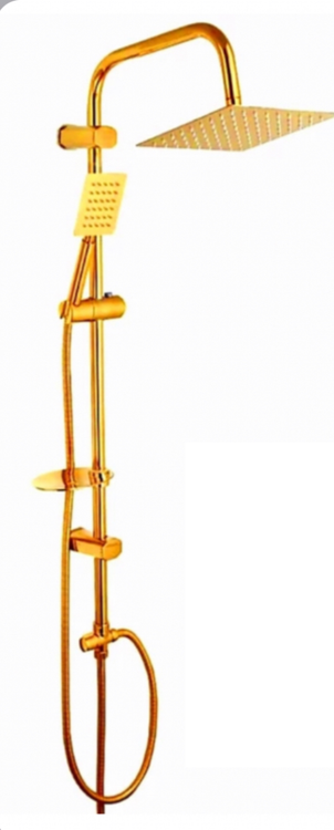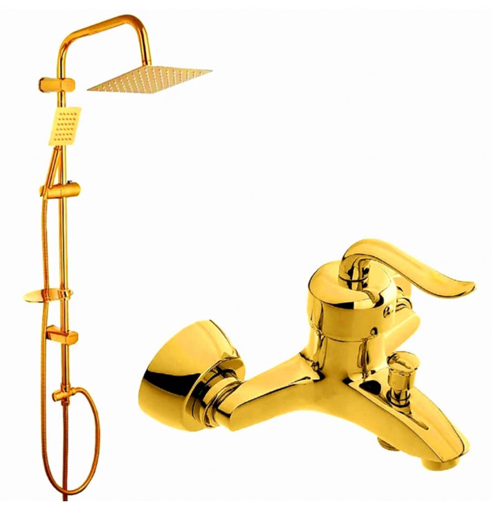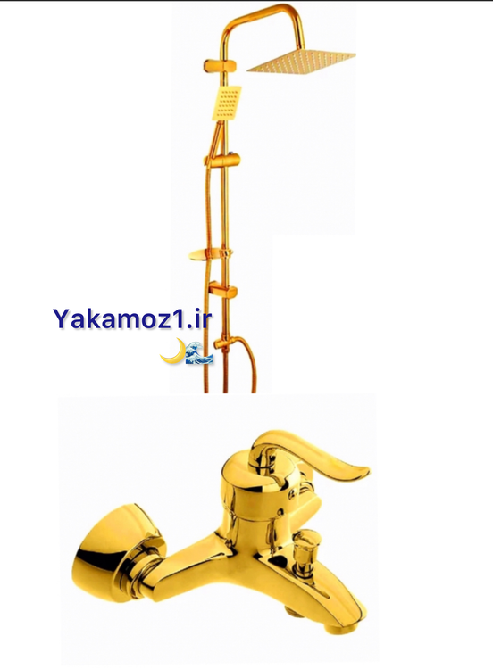 ست شیر حمام قاجاری بامبو طلایی با علم دوش دوکاره استیل مربعی طلایی و ارسال رایگان