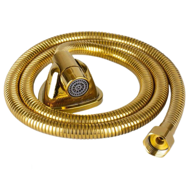 6 تکه شیرآلات مدل بامبو به همراه علم دوش دوکاره استیل طلایی و شلنگ توالت طلایی