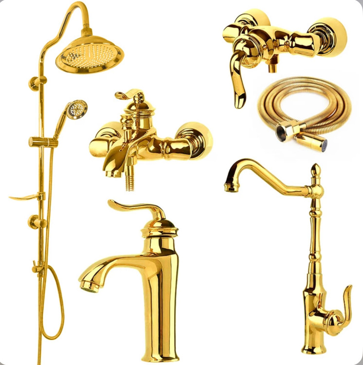 ست شیرآلات طلایی مدل بامبو با علم دوش شیپوری( ارسال رایگان)