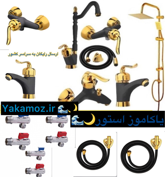 ست ۱۵ تکه شیرآلات مدل قاجاری بامبو مشکی طلایی ( ارسال رایگان )