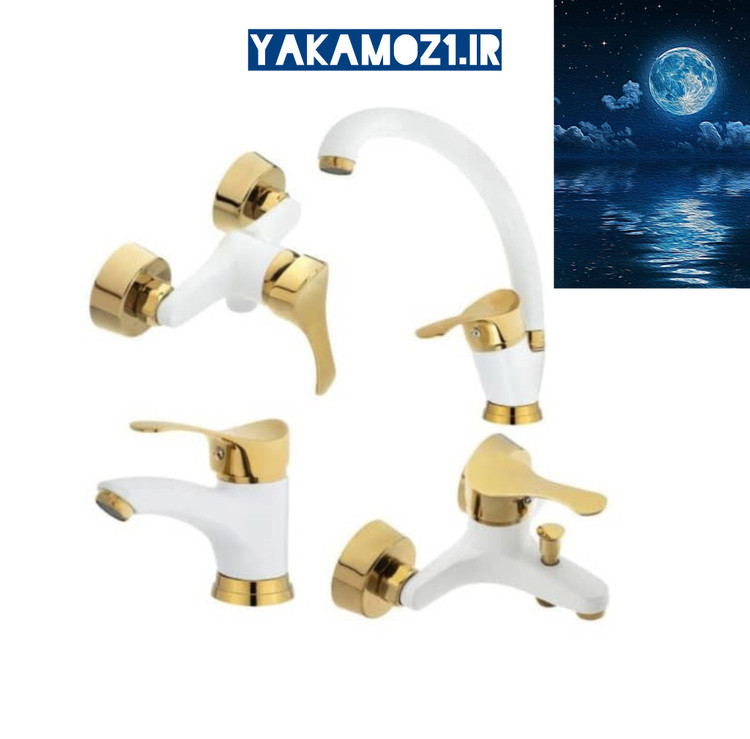 ست 4 تکه شیرآلات راهدانه مدل لاله سفیدطلایی