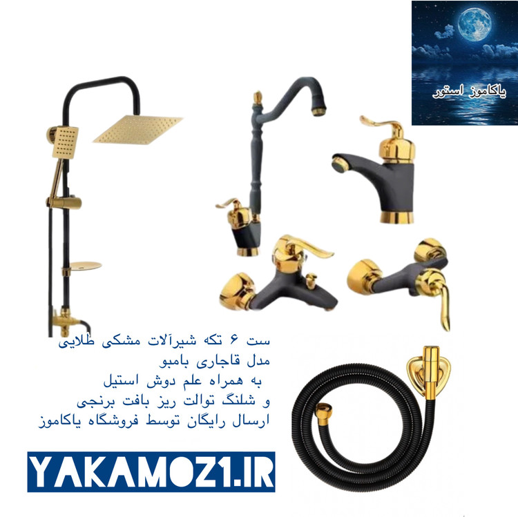 ست شیرآلات مشکی طلایی مدل قاجاری بامبو ست ۶ تکه مشکی طلایی(ارسال رایگان و فوری )