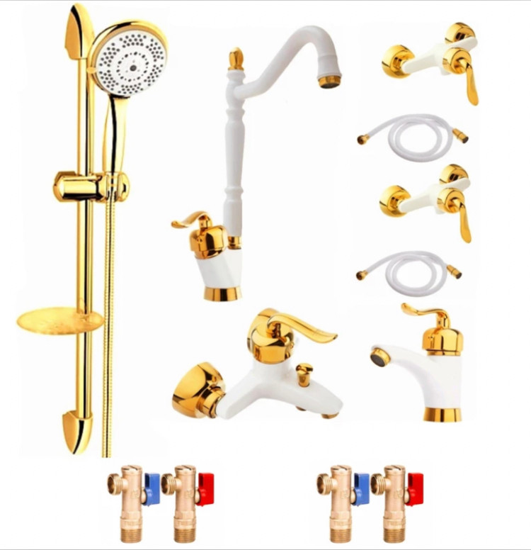 ست ۱۲ تکه شیرآلات سفیدطلایی قاجاری بامبو (ارسال رایگان)