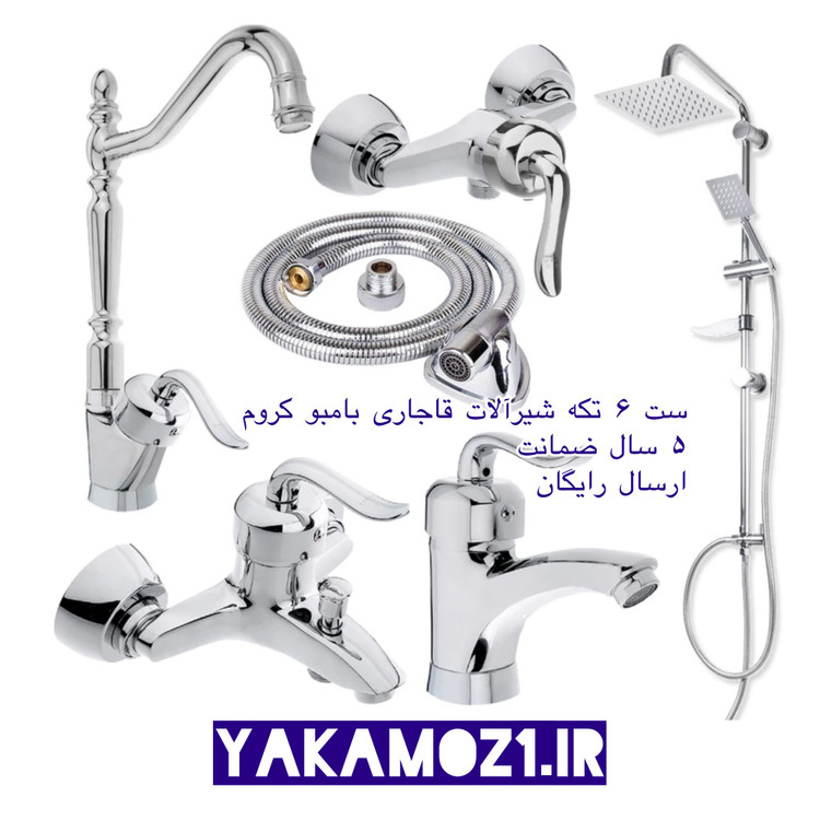 پک ۶ عددی شیرآلات بامبو قاجاری با علم دوش دوکاره و شلنگ توالت (ارسال رایگان)*تخفیف ویژه بمناسبت بلک فرایدی*