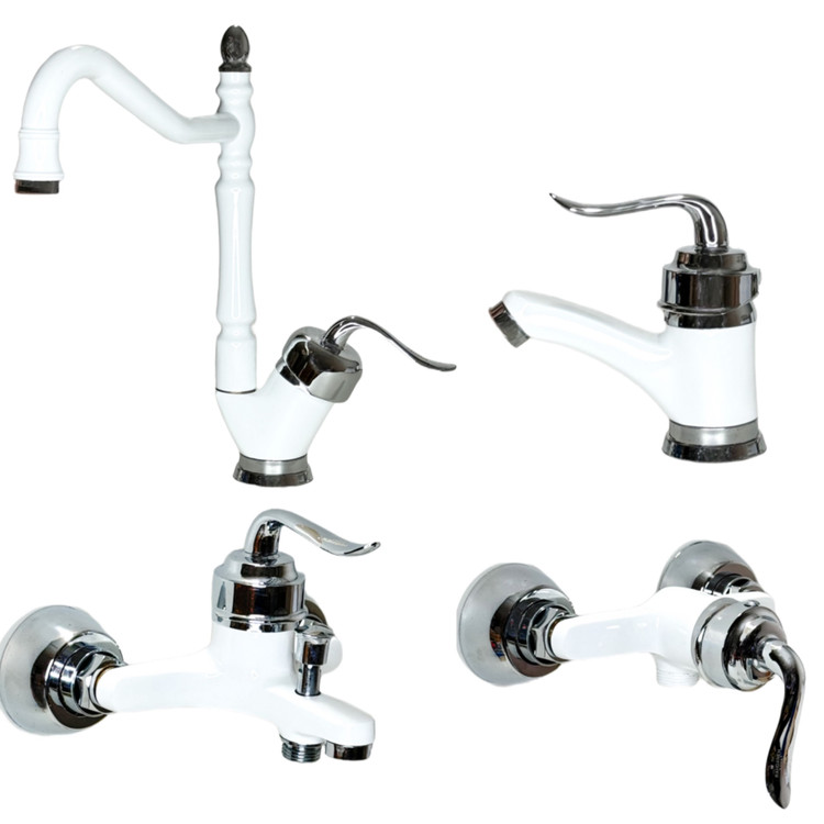ست چهارتایی شیرآلات مدل قاجاری رنگ سفید کروم