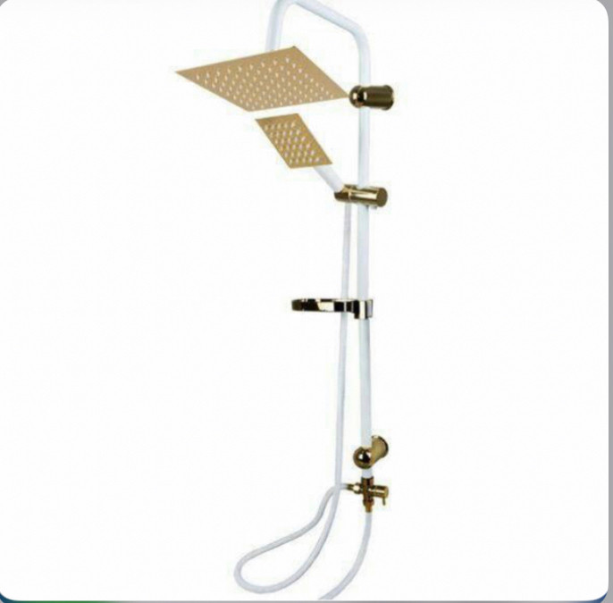 علم دوش دوکاره استیل سفید طلایی الماس با قطعات برنجی وABS و ارتفاع ۱۰۰سانتیمتری