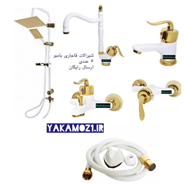 ست شیرآلات ۶ تکه مدل قاجاری بامبو سفیدطلایی (ارسال رایگان)