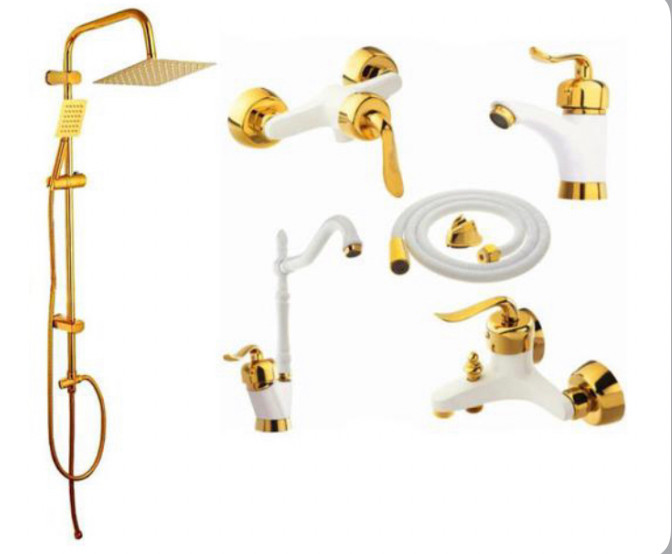ست شیرآلات بامبو قاجاری سفید طلایی (ارسال رایگان) مجموعه 6 عددی