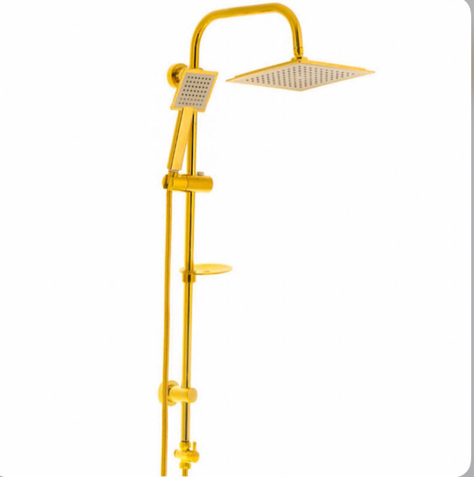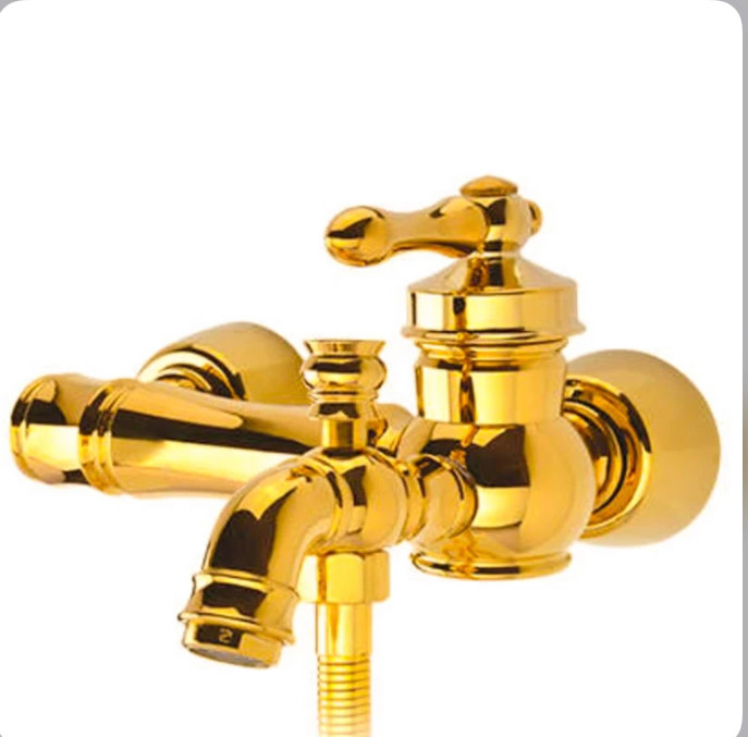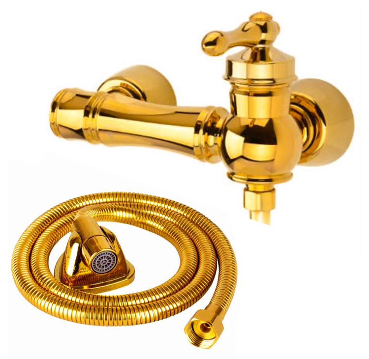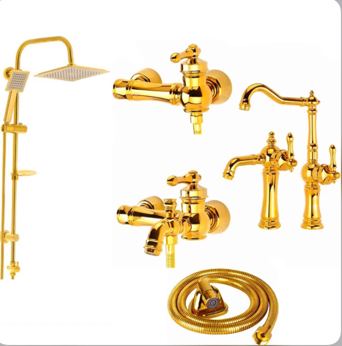 ست ۶ تکه شیرآلات طلایی فانتزی مدل تینا به همراه علم دوش دوکاره و شلنگ توالت (ارسال رایگان)