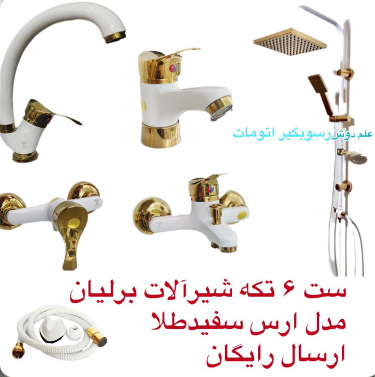 ست ۶ تکه شیرآلات برلیان مدل ارس سفیدطلایی (ارسال رایگان)