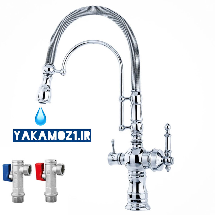 شیر ظرفشویی شاوری برلیان مدل مارون دومنظوره تصفیه دار فنری با ۲ عدد شیر پیسوار و ارسال رایگان