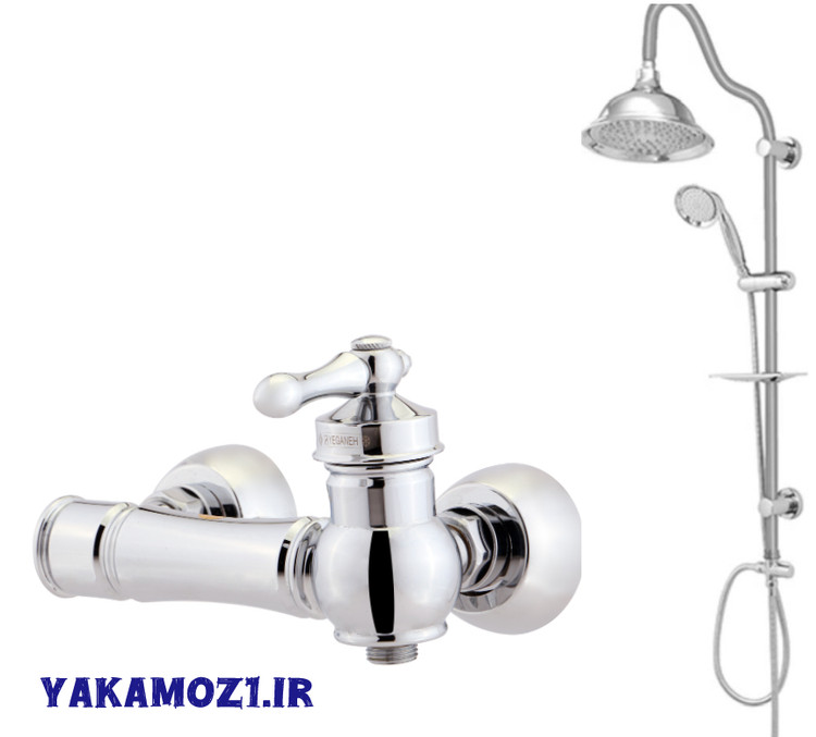 ست شیر حمام یگانه مدل الیزه به همراه علم دوش شیپوری استیل تسلن