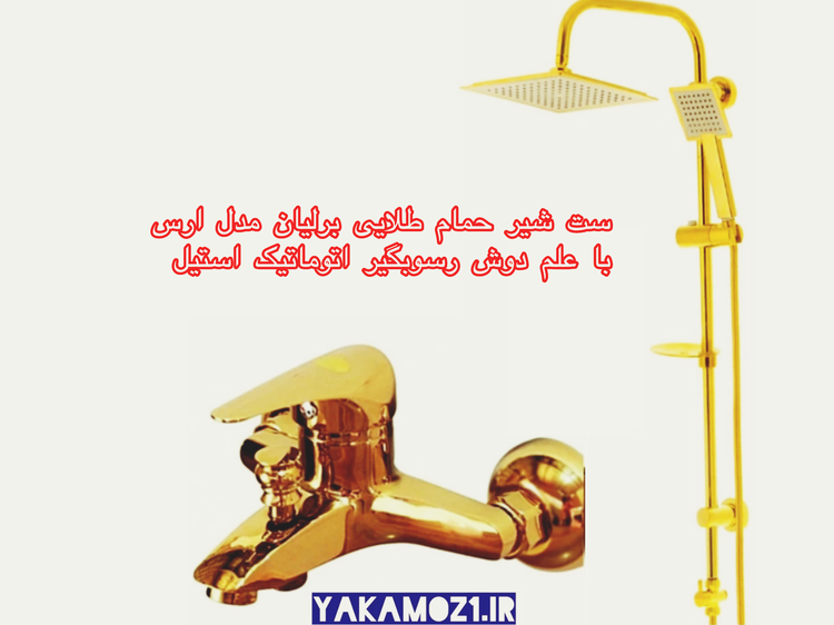 ست شیر حمام طلایی برلیان مدل ارس به همراه علم دوش رسوبگیر اتوماتیک با ارسال رایگان