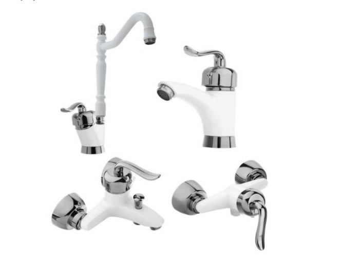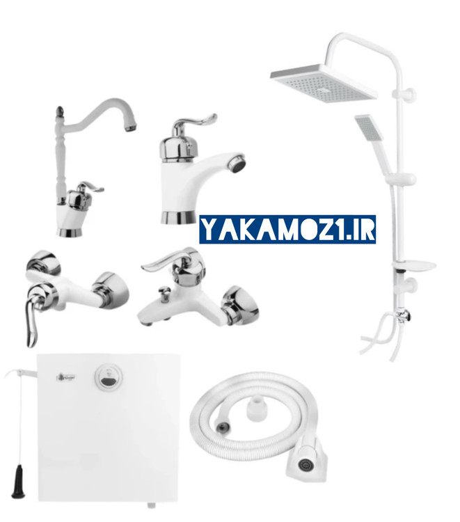ست ۷ تکه شیرآلات سفیدکروم قاجاری بامبو با فلاش تانک (ارسال رایگان)