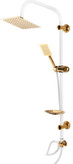 ست ۶ تکه شیرآلات سفیدطلایی لاله به همراه علم دوش دوکاره و شلنگ توالت ریزبافت (ارسال رایگان)