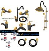ست ۱۵ تکه شیرآلات قاجاری بامبو مشکی طلایی با علم دوش شیپوری (ارسال رایگان)