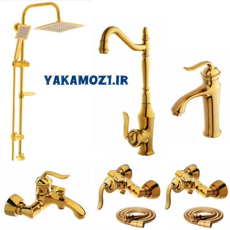 ست ۸ تکه شیرآلات طلایی بامبو و علم دوش و شیر توالت فرنگی * ارسال رایگان*