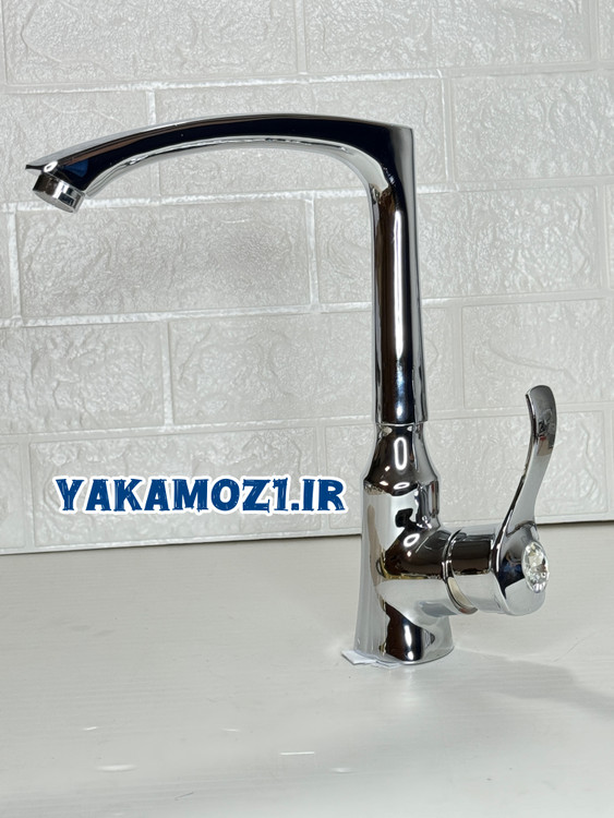 شیر ظرفشویی مدل کسری نگین دار طلایی از تنه ای سنگین با آلیاژ برنج ساخته است.