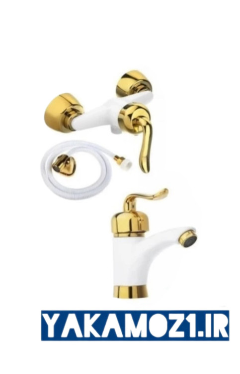 ست ۳ تکه شیرآلات سفیدطلایی سرویس بهداشتی مدل قاجاری با ارسال رایگان