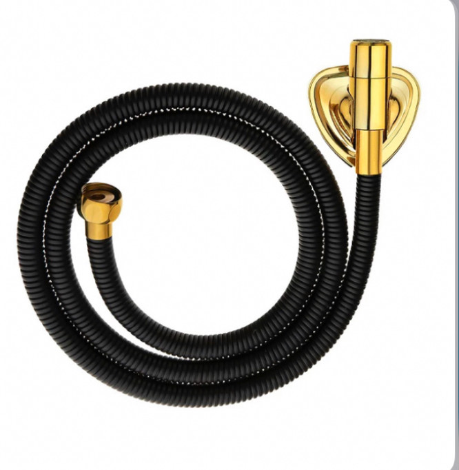 ست ۱۰ تکه شیرآلات مشکی طلایی مدل قاجاری بامبو به همراه علم دوش دوکاره استیل و شلنگ توالت ریزبافت برنجی با ارسال رایگان