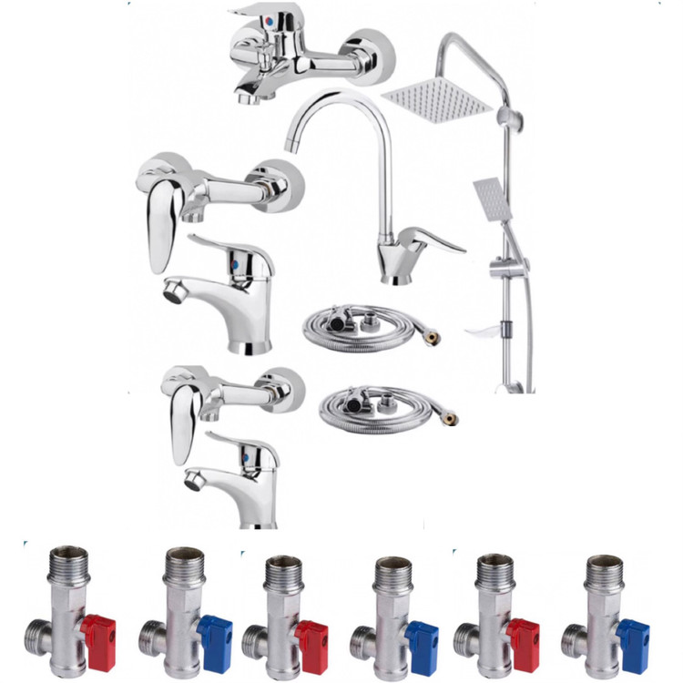 ست کامل شیرآلات ۱۵ تکه اکونومی ادرینا مدل قهرمان به همراه علم دوش استیل رسوبگیر اتوماتیک دوکاره و شیرپیسوارها و شیرتوالت فرنگی و شیر روشویی اضافه و شلنگتوالت با ارسال رایگان