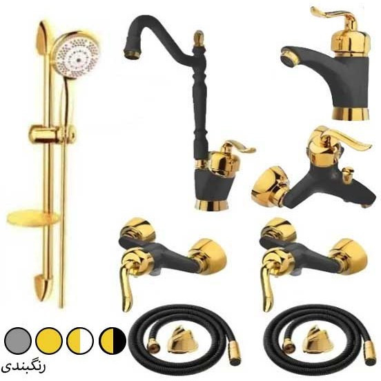 ست 8 تکه شیرآلات مشکی طلایی قاجاری با علم دوش سه حالته با ارسال رایگان*