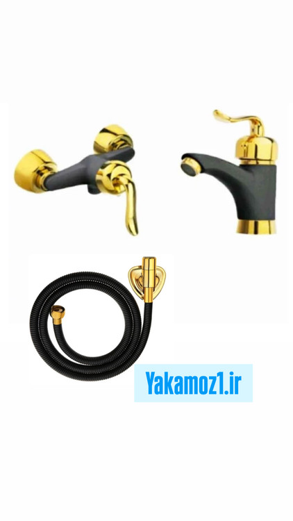 ست ۳ تکه شیرآلات مشکی طلایی قاجاری باشلنگ توالت ارسال رایگان و فوری