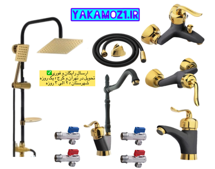 ست شیرآلات مشکی طلایی قاجاری بامبو ۱۰ عددی با ارسال رایگان و فوری ؛ ست ۱۰ تکه شیرآلات قاجاری مشکی طلایی بامبو قاجاری