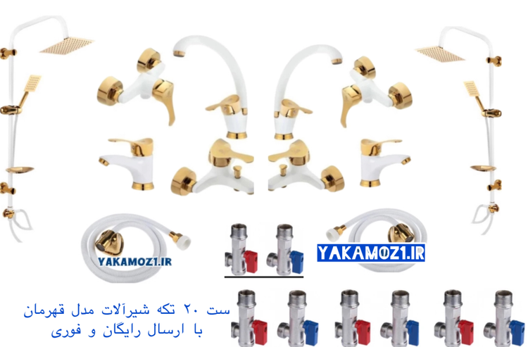 ✔️ ست 20 عددی سفیدطلایی شامل: ○ 2 عدد علم دوش دوکاره ○ 2 عدد شیر ظرفشویی ○ 2 عدد شیر حمام ○ 2 عدد شیر روشویی ○ 2 عدد شیر توالت ○ 2 عدد شلنگ توالت کروم ریزبافت ○ 8 عدد شیر پیسوار برنجی درجه یک ⭕ مشخصات دوش حمام ● شلنگ کششی استیل بلند و کوتاه ریز بافت ● سر دوش ثابت و متحرک با مکانیزم رسوب گیر اتومات ● آسانسوری ● سه راهی برنجی با کارتریج قابل تعویض ● لوله استیل، جا صابونی، پایه های نگهدارنده و پیچ رول پلاک ⭕ مشخصات شیرآلات ● جنس تنه: شمش برنج ● جنس روکش: نیکل و کروم ● کاتریج 42 ⭕ مکانیزم رسوب گیر اتوماتیک: وقتی جریان آب قطع شود، مکانیزم فعال شده و تمامی مجراهای خروجی سردوش را تمیز کرده و از رسوب گرفتن جلوگیری می نماید