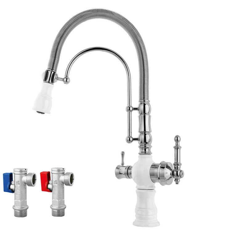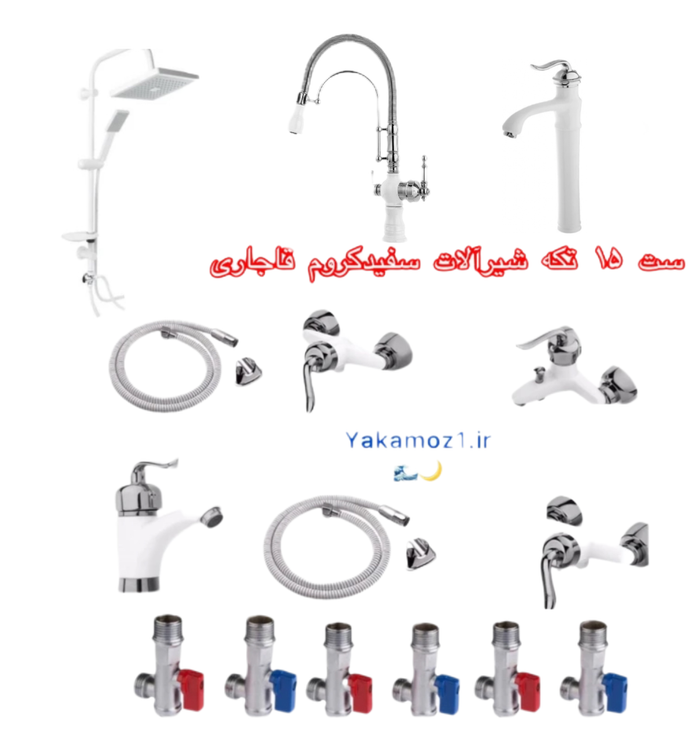 ست 15 تکه شیرآلات قاجاری سفید کروم با ظرفشویی فنری تصفیه دار و روشویی بلند با ارسال رایگان
