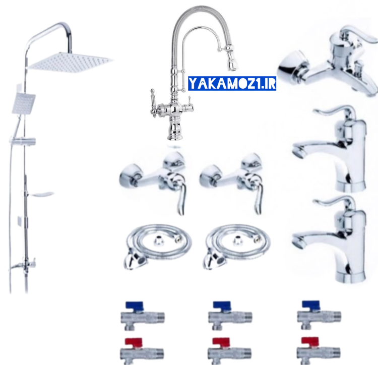 و ۶ عدد شیر پیسوار برنجی که برای ۲ عدد شیر روشویی ۴ تا بکار برده میشه و ۲ تای دیگه برای شیر ظرفشویی استفاده میشه