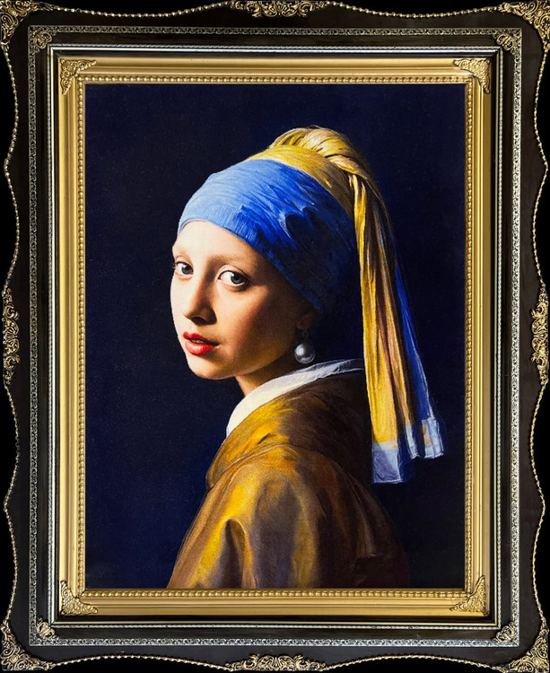 تابلو فرش دستبافت طرح “دختری با گوشواره مروارید” است، که بر پایهی نقاشی مشهور یوهانس ورمیر (Johannes Vermeer) خلق شده است. این نقاشی یکی از شناخته شده ترین آثار هنری جهان است و به “مونالیزای شمال” نیز معروف است.
