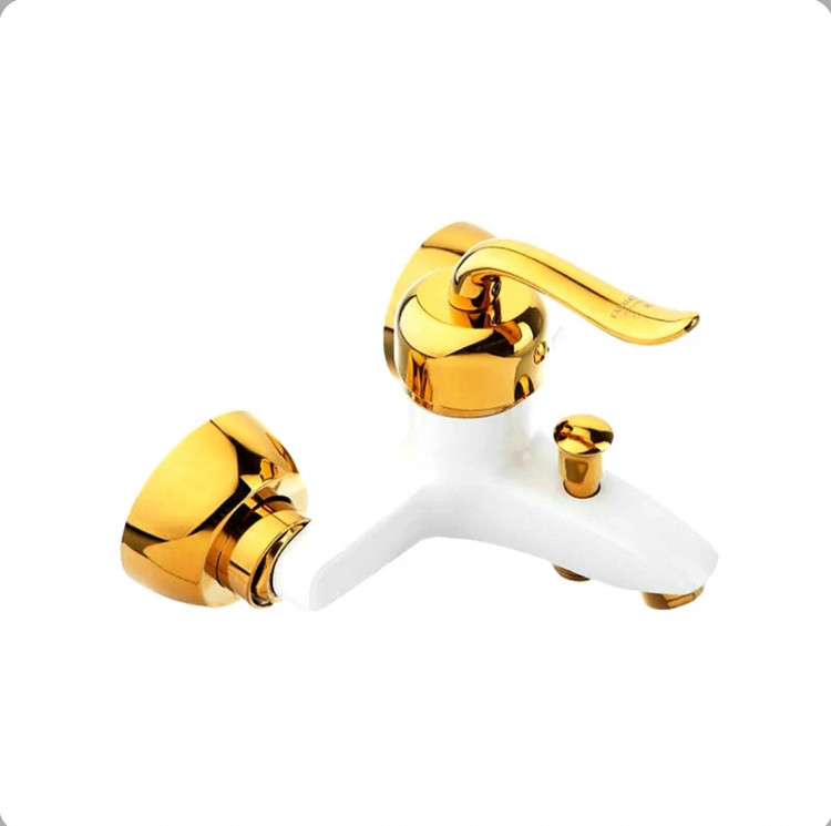 ست شیر حمام قاجاری بامبو سفیدطلایی با علم دوش دوکاره استیل مربعی*ارسال رایگان*