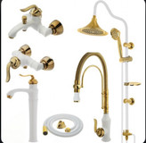 ست ۶ تکه شیرآلات سفیدطلایی مدل بامبو سری مخصوص با شیر ظرفشویی شاوری فنری فانتزی اعلا و روشویی بلند (ارسال رایگان)