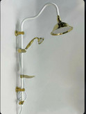 ست شیرالات مدل بامبو سفید طلایی با ظرفشویی فنری به همراه دوش حمام و شلنگ توالت *** دارای نشان استاندارد ملی ایران*** پوشش رنگ الکترواستاتیک کوره ای پوشش طلایی PVD *** کارتریج 40*** پرلاتور برنجی و کاهنده مصرف اب علم ظرفشویی برنجی *** تست توسط دستگاه اتوماتیک - ابعاد شیر ظرفشویی : 10x16x41 سانتی متر و وزن ۲ کیلوگرم به همراه شلنگ اتصال به شیر پیسوال سایز 3/8 - ابعاد شیر روشویی : 38x10x18 سانتی متر و وزن 1200گرم به همراه شلنگ اتصال به شیر پیسوال سایز 3/8 - ابعاد شیر توالت : 13x15x18 سانتی متر و وزن 1200 گرم - ابعاد شیر حمام : 15x18x20 سانتی متر و وزن 1700 گرم به همراه شلنگ توالت سفید طلایی -- مشخصات دوش حمام : پوشش رنگ الکترواستاتیک کوره ای لوله استیل کوهانی پوشش طلایی PVD مشخص به سردوش و گوشی سیار تک حالته پلاستیکی شیپوری جا صابونی پلاستیک پایه های پلاستیکی شلنگ استیل و برنجی