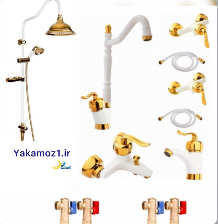 ست ۱۲ تکه شیرآلات سفیدطلایی مدل قاجاری بامبو با علم دوش شیپوری (ارسال رایگان)