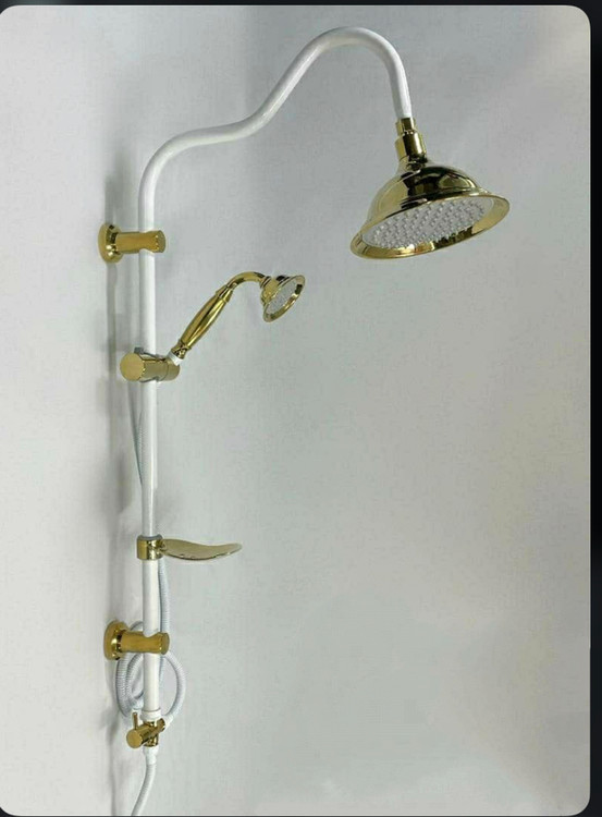 علم دوش دوکاره شیپوری سفیدطلایی استیل با قطعات برنجی و ABS