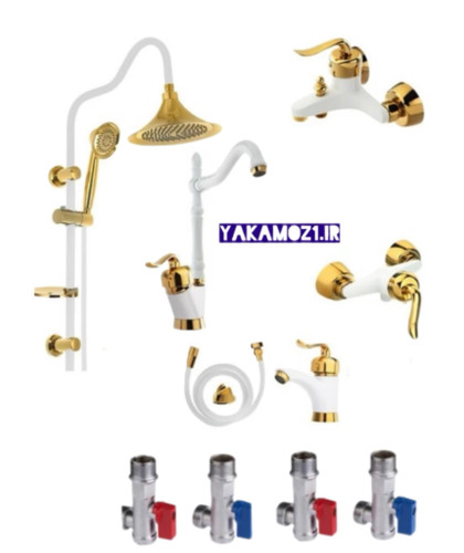 ست ۱۰ تکه شیرآلات سفیدطلایی مدل قاجاری بامبو با ارسال رایگان