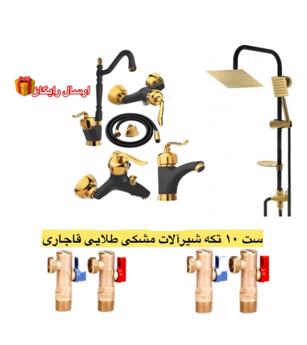 ست ۱۰ تکه شیرآلات مشکی طلایی مدل قاجاری بامبو با ارسال رایگان/امکان تحویل در همان روز در تهران و کرج